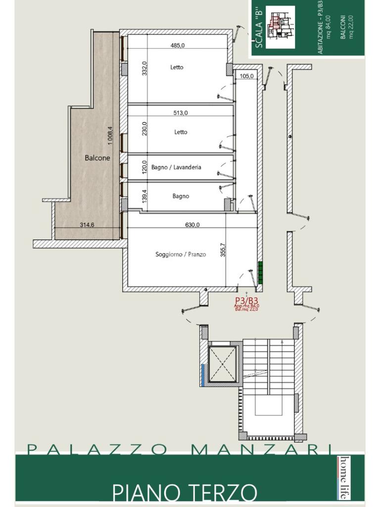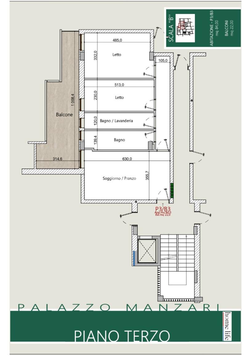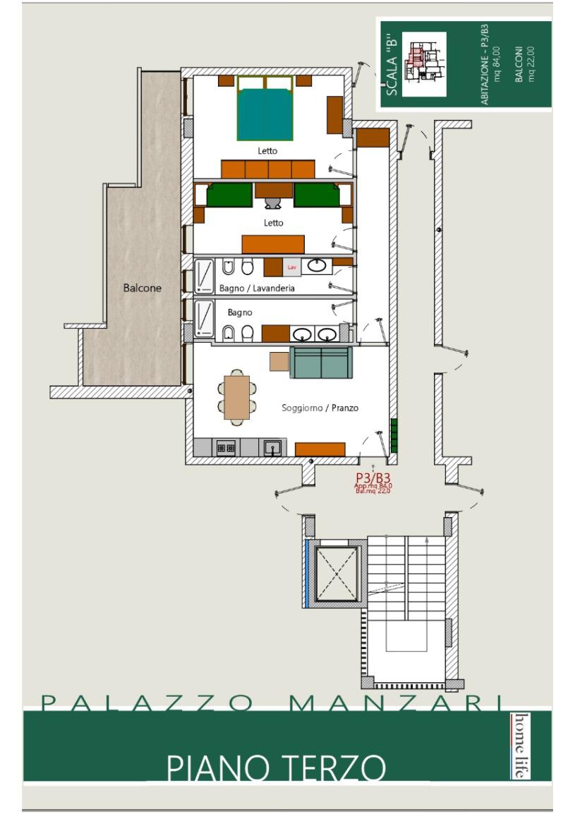 3 di 5 con ascensore (Piano medio)
