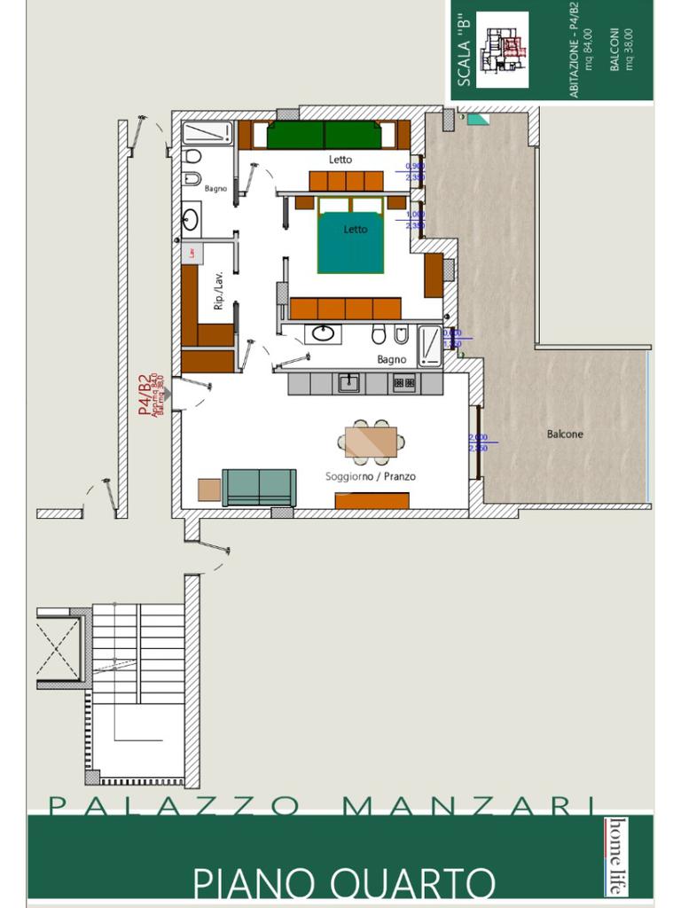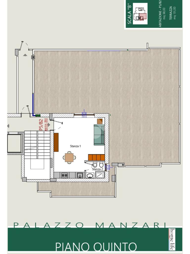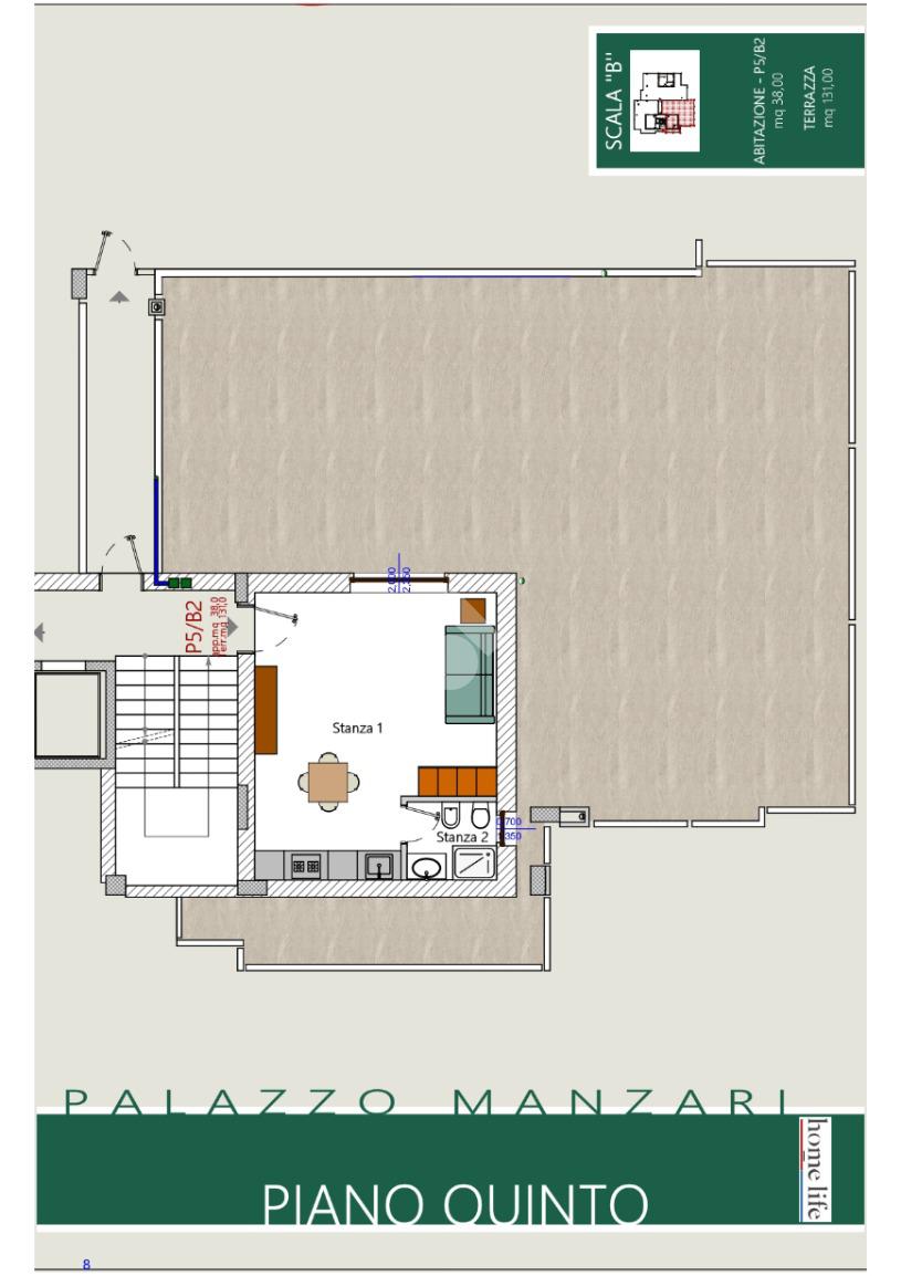 L'attico è composto da 3 vani di circa 84mq int. + 38mq composto da: salone/cucina open space, disimpegno, camera da letto, cameretta, ripostiglio, due bagni. Esposizione su ampio balcone. Vano sovrastante composto da vano tecnico di circa 38mq e terrazzo di circa 131 mq.